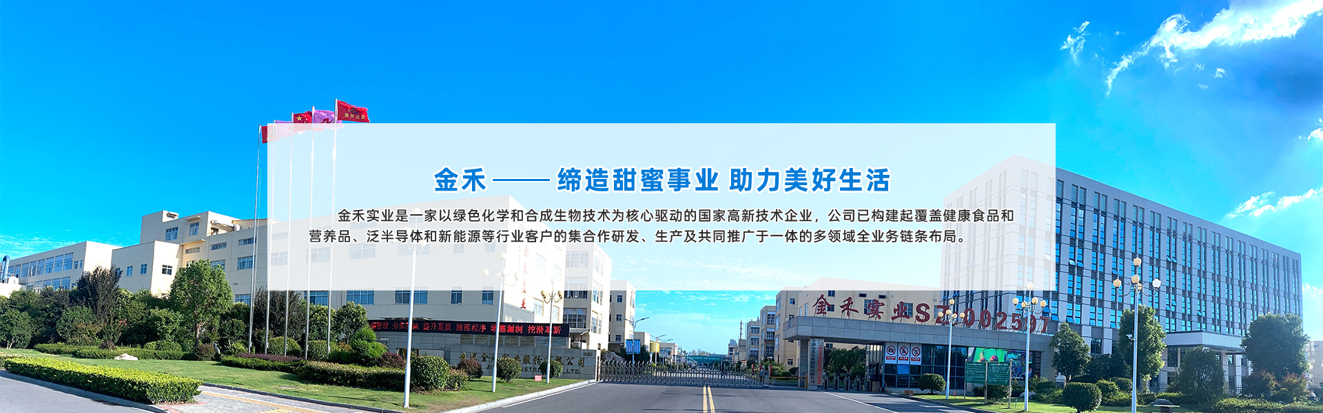 安徽金禾實業股份有限公司是一家致力于服務美好生活和先進制造,專業從事食品配料、大宗及電子化學品和功能性化工中間體的高新技術企業,是甜味劑安賽蜜、三氯蔗糖和香料麥芽酚的主要生產商。公司主營業務為食品健康配料的生產研發,新型化工材料及中間體的生產研發,大宗及電子化學品的生產研發。主要服務于食品飲料、日用消費、醫藥健康、農業環保及先進制造業等領域的客戶。下游知名客戶包括各大食品飲料及香精香料公司。公司前身為始建于1974年的來安縣化肥廠,股份制公司成立于2006年,2011年7月7日在深交所中小企業板掛牌上市,股票代碼為002597(ISIN: CNE1000015C4),于2017年12月1日納入“深港通”標的,于2018年1月2日納入深證成指成份股,連續入選“證券時報”主辦的第十一屆和第十二屆“中國中小板上市公司價值五十強”名單。總部位于安徽滁州,擁有安徽來安及定遠鹽化工園兩個生產基地,在合肥及南京分別設有合成材料研究院有限公司和應用研發中心。